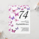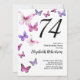 Butterfly 74th Birthday Invitation in Pink /Purple