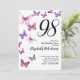 Butterfly 98th Birthday Invitation in Pink Purple