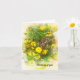 Delicate butterfly perched on yellow flowers and greenery softly fades into a dreamy cream background, creating a cheerful yet soothing image. Thinking of You sentiment on front of card; blank inside for you to place your own message. Suitable for any occasion, including serious illness. Digital painting created from artist's original photograph.