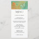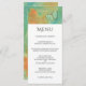 Vibrant turquoise, teal, orange and earth tones accented with a turquoise butterfly highlight this lovely wedding menu card. Edit the text with your menu items.