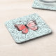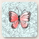 Beverage Coasters with Pink Butterfly And Roses - MIGNED Art Painting - Customizable / Transferable