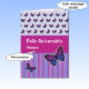 A modern birthday card design in Portuguese ready for you to personalise with your own text and the name of the recipient. The colour scheme is pink, lilac and blue, and there are coordinating butterflies and stripes patterns on the front. Inside, there is a single butterfly on one side, and a delicate pattern of scattered hearts on a pale pink background on the other. Type in the boxes to change the greeting on the front "Feliz Aniversário" (="Happy Birthday") and the name.
