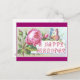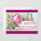 A vintage birthday scrapbook card from the late 1800s with a butterfly on a pink rose.