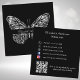 Elevate your brand with our elegant black business cards featuring a stunning faux silver looking butterfly design. Perfect for female entrepreneurs, makeup artists, beauty salons, designers, and independant artists. Each card includes a QR code generator, creating a unique code linking to your website or social media. Facebook and Instagram icons.