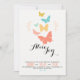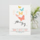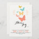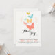A trendy invitation with colourful, fluttering butterflies against a white, canvas background. Perfect for any feminine celebration.