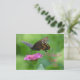 This postcard invitation features a beautiful dark coloured butterfly gathering nectar from a pink zinnia blossom. Great for many different occasions!