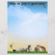 A colorful sky stationery with some butterflies, cats, a baby raccoon, a mailbox and a dragonfly on the front. On the back more cats, and bees.