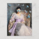 Vintage painting remix of a woman wearing a vintage white dress with pastel blue butterflies.