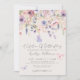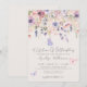 Both the front and back feature a soft ivory background, creating a warm and elegant base for the design. The top of the invitation showcases a delicate arrangement of watercolor wildflowers and greenery, with pink and purple butterflies fluttering gracefully across the florals. The color palette includes soft blush pinks, dusty rose, lilac, lavender, violet, and fresh greens for a dreamy, romantic look.