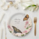 Beautiful romantic napkins with garden theme featuring a light pink floral background and lovely butterflies. Customise the names and wedding date text. Other matching items in my store.