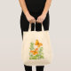 Natural Colour Grocery Tote Bag, decorated with Butterflies Design in Orange and Green