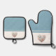 Butterfly Heart Blue White Oven Mitt & Pot Holder Set