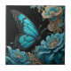 Butterfly in a floral garden at night tile