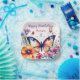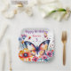 A pretty butterfly surrounded by pink and purple flowers watercolor illustration girl's birthday party personalised paper plates.