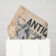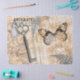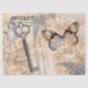 Large vintage key, butterfly, and fairy with background of old advertisements and script ephemera.