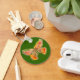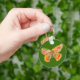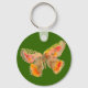 A dark green circular keychain embellished with a delicately painted butterfly.