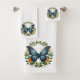 Elevate your bathroom decor with this enchanting bath towel set, including a bath towel, hand towel, and washcloth. Each piece features a captivating design of a graceful blue butterfly resting amidst a lush wreath of green leaves and vibrant orange flowers. This nature-inspired motif brings a sense of tranquillity and elegance to your space, making it a perfect choice for creating a serene and inviting atmosphere in your home.