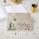 Butterfly on white puff flower on textured background for funeral or memorial guest book.