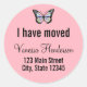 Butterfly on Custom Pink Moving Announcement Classic Round Sticker