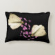 This decorative accent pillow features the exquisite cabbage butterfly (Pieris rapae). She has stopped flitting around the garden long enough to perch on a pink verbena flower. She has a black body which does not show beneath her four white wings, each with a black dot at the centre. The two upper wings have a black band at the tips. Her face is a pale green. She is a lovely, delicate creature.