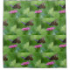 This shower curtain features a butterfly gathering nectar from a pink zinnia.