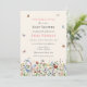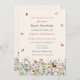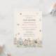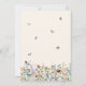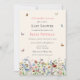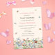 This is a sweet and colourful boho baby shower invitation. The design features elegant and summery delicate wildflower florals in pretty shades of blue, terracotta, pink, rust, purple and yellow. The butterflies and bees add the finishing cute and whimsical touch.