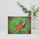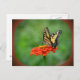 This postcard features a butterfly resting on an orange zinnia.