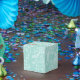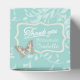Graphic drawing of butterfly and wildflower damask style patterned thank you gift box in teal aqua green. Fashionable elegant chic design part of the butterflies wedding stationary set. Ideal for wedding favour gifts Personalise with your own name and attendants title currently reads Thank you Bridesmaid Isabelle. Unique drawing and design by Sarah Trett.