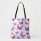 Seamless pattern of flying butterflies in shades of pinks and purples with white flowers over pale pink background. © and ® Bigstock® - All Rights Reserved.