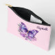 A girly pink background decorated with a purple butterfly, pink and purple flowers. Personalise and add your name.