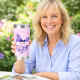 A girly pink background decorated with purple butterflies, pink and purple flowers, pink confetti. Personalise and add your name.