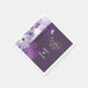 Elegant purple floral wedding napkins featuring soft watercolor flowers in lavender, blush, and white, accented with delicate botanical line art and a graceful butterfly. The rich plum background creates a romantic and sophisticated look, making these napkins a beautiful choice for wedding receptions, cake tables, cocktail bars, dessert displays, and bridal events. Perfect for couples creating a coordinated floral wedding décor and stationery suite.