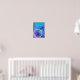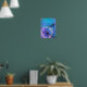 This image depicts a blue rose, a blue butterfly and silvery moon. The poster lends itself a dreamy quality to it with hues of blues and purples.