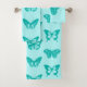 Butterfly sketch, aqua and turquoise bath towel set