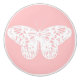 Digital sketch of a butterfly adapted from a vintage illustration - white on a soft shell pink / coral pink background