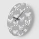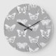 Butterfly sketch, silver grey and white large clock