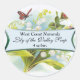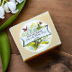 A label for soap and bath and body care products featuring a butterfly and flowers in the background.