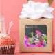 The size is perfect and the design has a softness with the beautiful flowers around the edges. The black lettering on the white background is sharp. It stands out beautifully. I love the Mixture of font styles as it catches the eye.