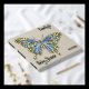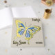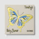 Discover the ultimate keepsake for your after delivery baby shower, a personalised guest book that radiates luxury and charm. The front cover displays a cute butterfly in a sweet trendy palette of blue surrounded with gold. the Baby’s name is written in an elegant serif font, complemented by "Baby Shower" in an exquisite script in real foil.