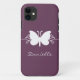 Sweet and simple Butterfly Swirls Case-mate iPhone 5 Barely There Case in eggplant purple featuring a lovely butterfly silhouette and swirl border. This lovely iPhone case may be customised with the personalised text of your choosing. This pretty butterfly iPhone skin is girly and stylish and perfect for protecting your phone! Click on the "Customise It" button to additional personalisation options.