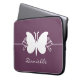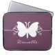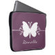 Sweet and simple Butterfly Swirls Laptop Sleeve in eggplant purple featuring a lovely butterfly silhouette and swirl border. This lovely electronics bag may be customised with the personalised text of your choosing. This pretty butterfly sleeve is girly and stylish and perfect for protecting your computer! Click on the "Customise It" button to additional personalisation options.