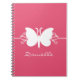 Sweet and simple Butterfly Swirls Notebook in magenta pink featuring a lovely butterfly silhouette and swirl border. This lovely notebook may be customised with the personalised text of your choosing. This pretty butterfly notebook is girly and stylish and can be used to jot down notes or other fun stuff! Click on the "Customise It" button to additional personalisation options.