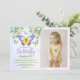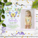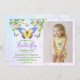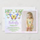 Sweet and summery butterfly theme girl's birthday party invitations. Featuring a lovely bunch of watercolor flowers and pastel butterflies plus the birthday girl's photo alongside all the party details.