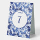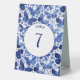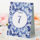 Indigo blue and white watercolor butterfly painting. Original art by Nic Squirrell. Coordinating double sided table number card with text which can be altered to suit your celebration.