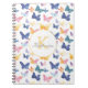 Beautiful custom name notebook with a colourful watercolor butterfly pattern. Notebook with personalised name in seamless delicate butterflies in pink, lilac, yellow and blue.