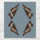photograph of a dark orange, brown and black butterfly on a grey blue background makes this unique wine label.