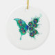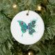 Butterfly with Green Peacock Feathers Ceramic Tree Decoration