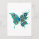 Artistically drawn, fictional, green, detailed butterfly with green, beautiful, peacock feathers on white background.
