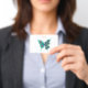 Artistically drawn, fictional, green, detailed butterfly with green, beautiful, peacock feathers on white background.