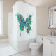 Artistically drawn, fictional, green, detailed butterfly with green, beautiful, peacock feathers on white background.